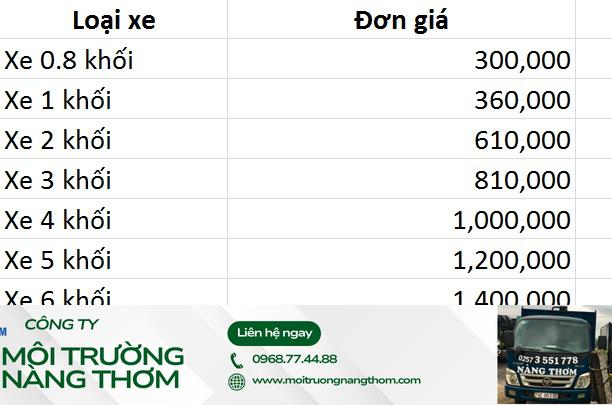 Để quý khách có thông tin chi tiết về “Hút hầm cầu 1 khối bao nhiêu tiền” theo khối lượng, dưới đây là bảng giá tham khảo trên thị trường: