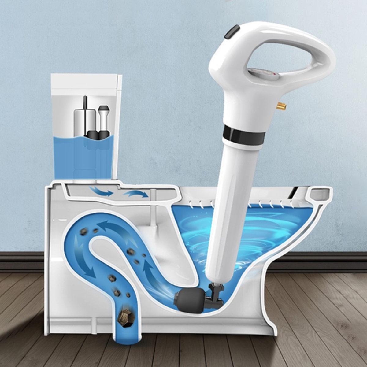 Trên thị trường hiện nay, có 2 loại dụng cụ thông tắc nghẽn bồn cầu bằng khí nén phổ biến mà bạn có thể tham khảo như sau: