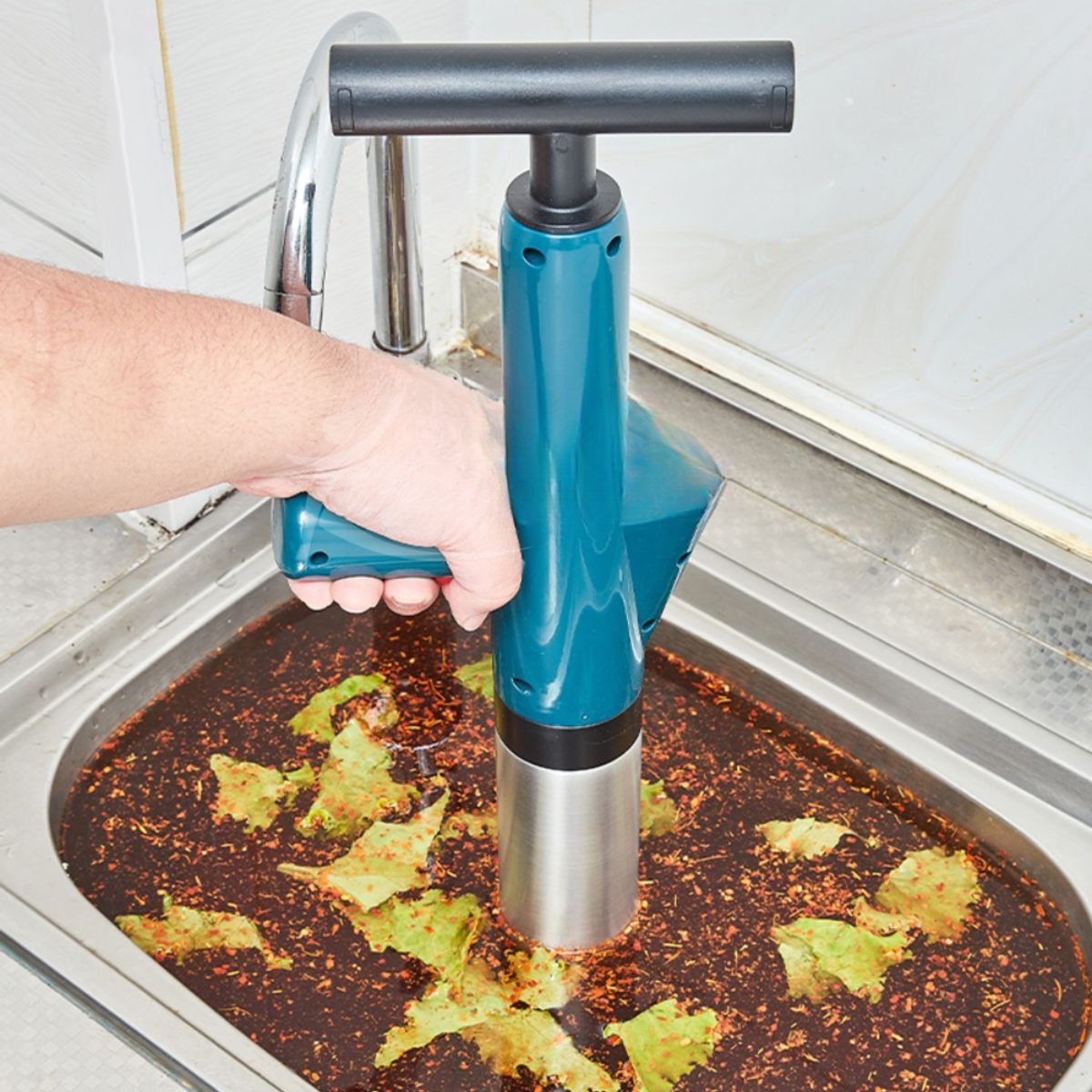 - Nhấn nút để bắn áp suất vào khu vực tắc, đồng thời vệ sinh đầu thông sau khi sử dụng để duy trì hiệu quả.